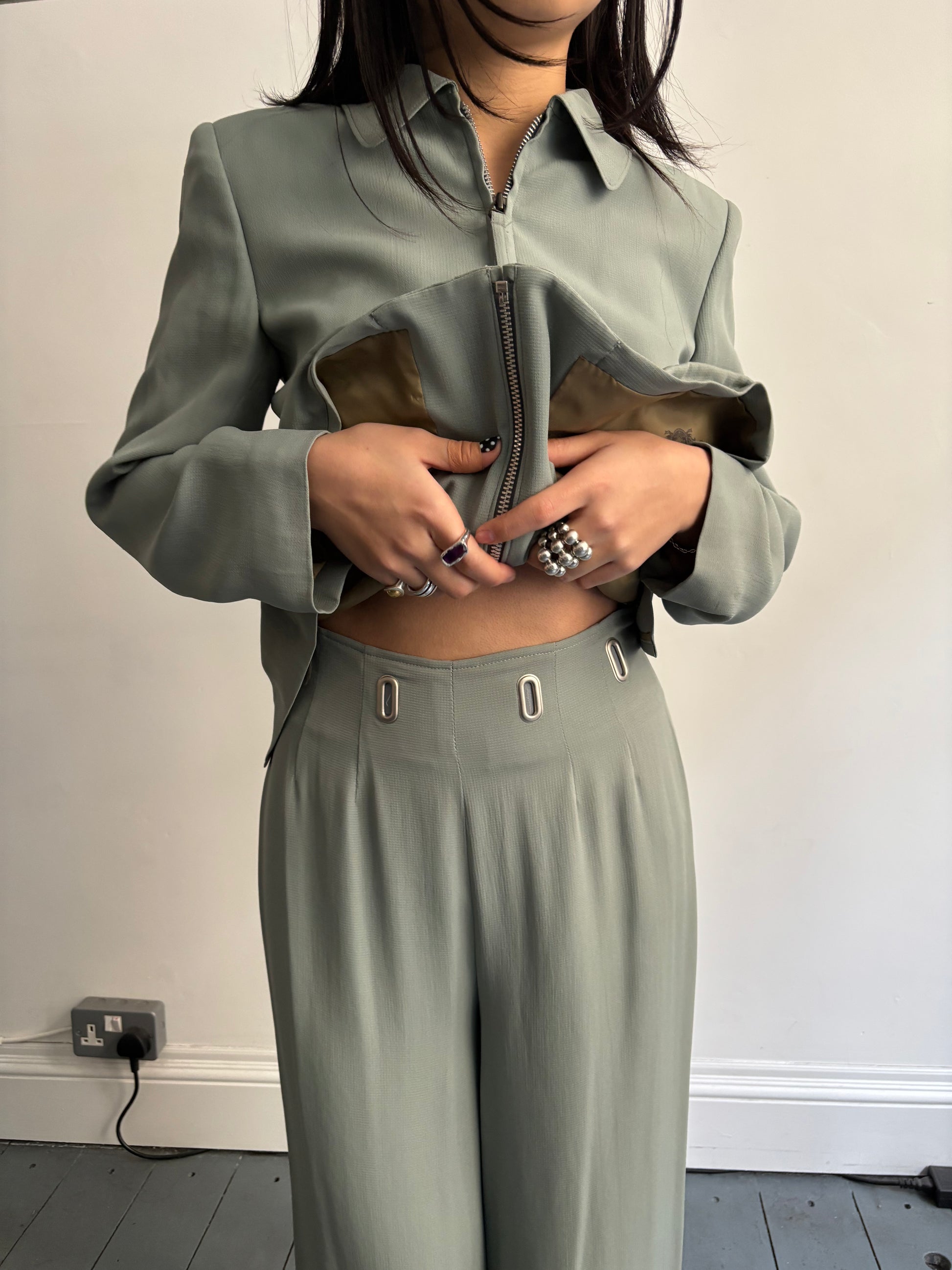 Light teal blue with matching trousers available.