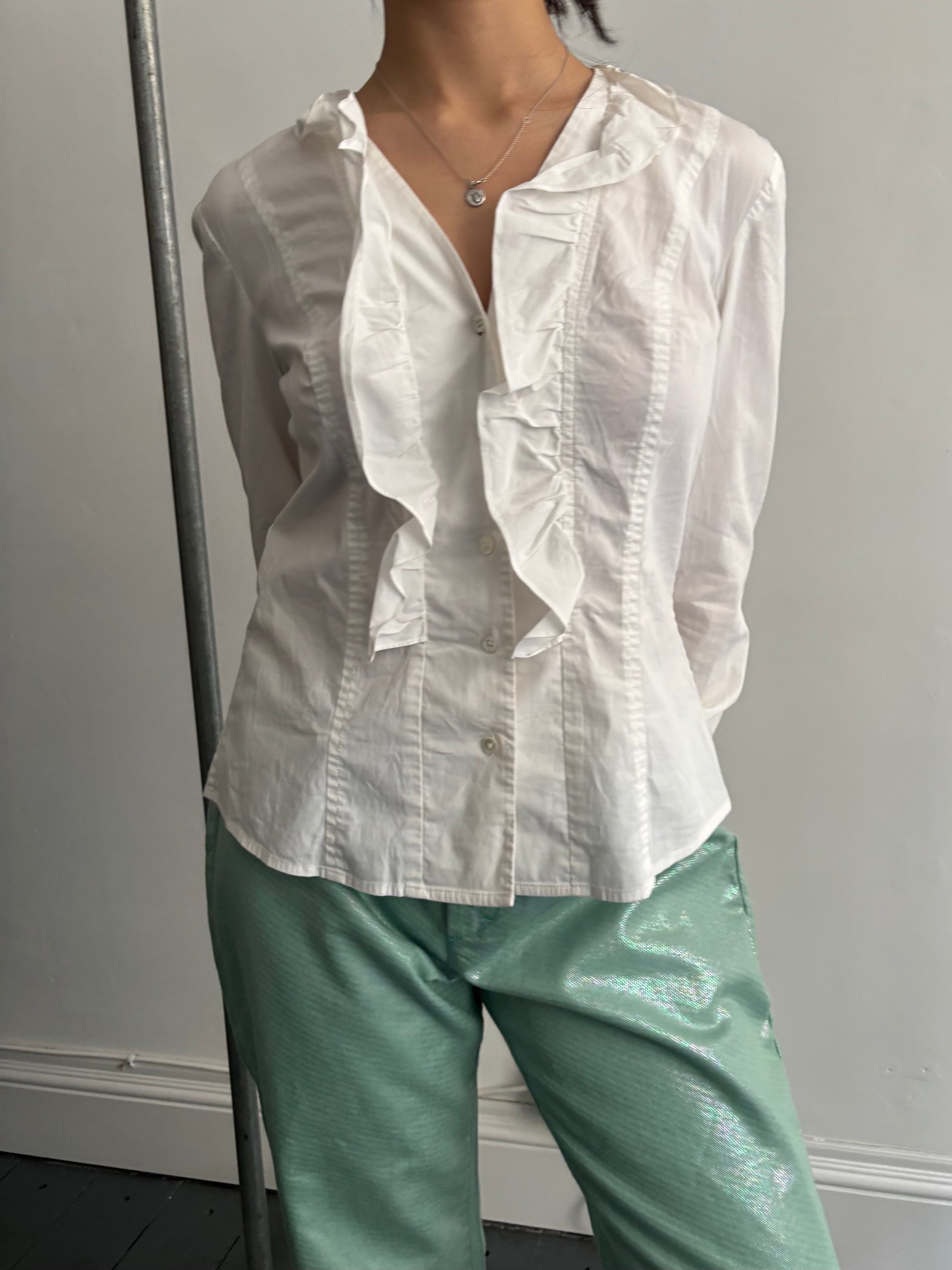 Iconic y2k blue green metallic capri trousers.